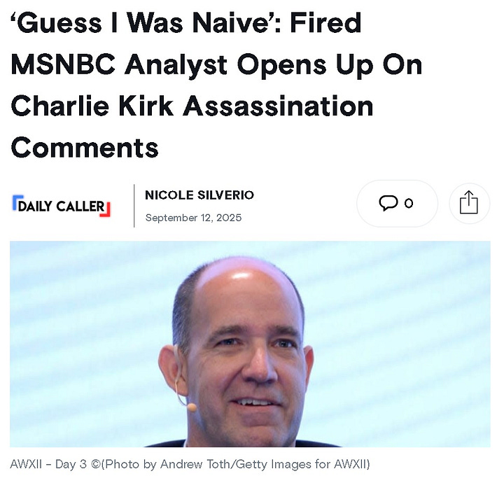 But I think what strikes me most is that the reaction of everyone to Kirk's death seems like continuing proof that we as a people just can't be normal about anything. The chronic online-ness of American politics and culture incentivize the most extreme reactions and then amplifying those reactions to stoke the emotional flames of others. In saner times, a public profile murder on this level might force us to step back and lower the temperature a little. But of course the immediate American reaction to this, if we're all being honest, is most people just sort of hoping the killer wasn't on their side of the aisle.