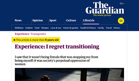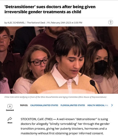 Yes, I know the trans lobby vehemently disagrees with this and is champing at the bit to play their “Trust Source Trump Cards” (There’s that awful word again!) to prove to me that euphemistic “gender-affirming care” saves lives and drastically reduces otherwise inevitable suicides if teenagers aren’t allowed to “transition,” and the incidence of which is only so high in the first place because of the myopic, cruel, and hateful stigmas that disgusting transphobes like me perpetuate against the ennobled trans community. As I say in the article, this is where the card game of War takes place, and I mention myriad sources to support why I am correct, like this one, which the trans lobbyist dismisses, and then sends me a link to The Trevor Project, which I dismiss, and the entire process described over the course of this article plays out proving the very points I am making.